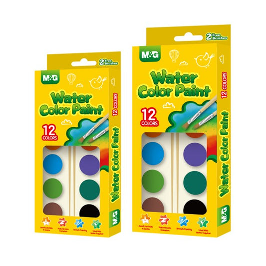 M&G 8g Water Color Paint. 12 colors with 2 brushes. (1 per pack)