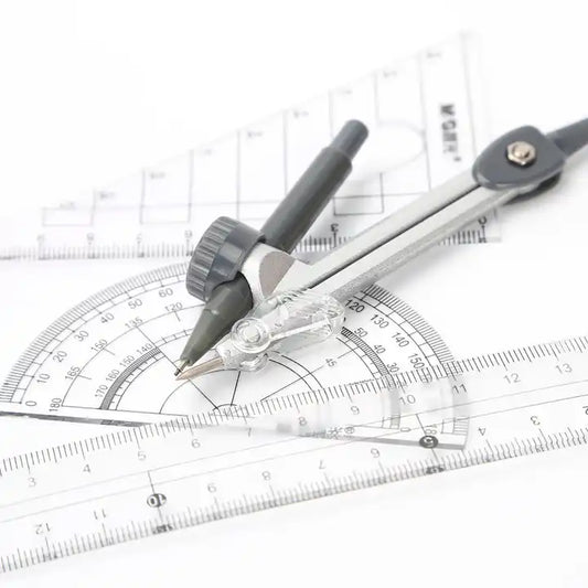 M&G Compass Set 8pcs (4pcs Ruler set +1pc 0.5mm Mechnical pencil +1 pc Eraser +1 Compass). (1 per pack)
